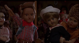 ¡Estos muñecos están sumamente enojados!. Tenemos apuñalamientos, balazos, una cabeza golpeada severamente contra la pared, cortaduras por cuchillitos, seres humanos convertidos en muñecos, y duendes horripilantes que muestran su rostro espantoso. TODO DE CALIDAD. Para ser 1987, los efectos son de primera. Ah, cómo extraño éste tipo de f/x.